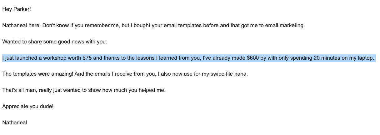 "I never made a single dollar from my email list until Parker helped me with his email templates."Â